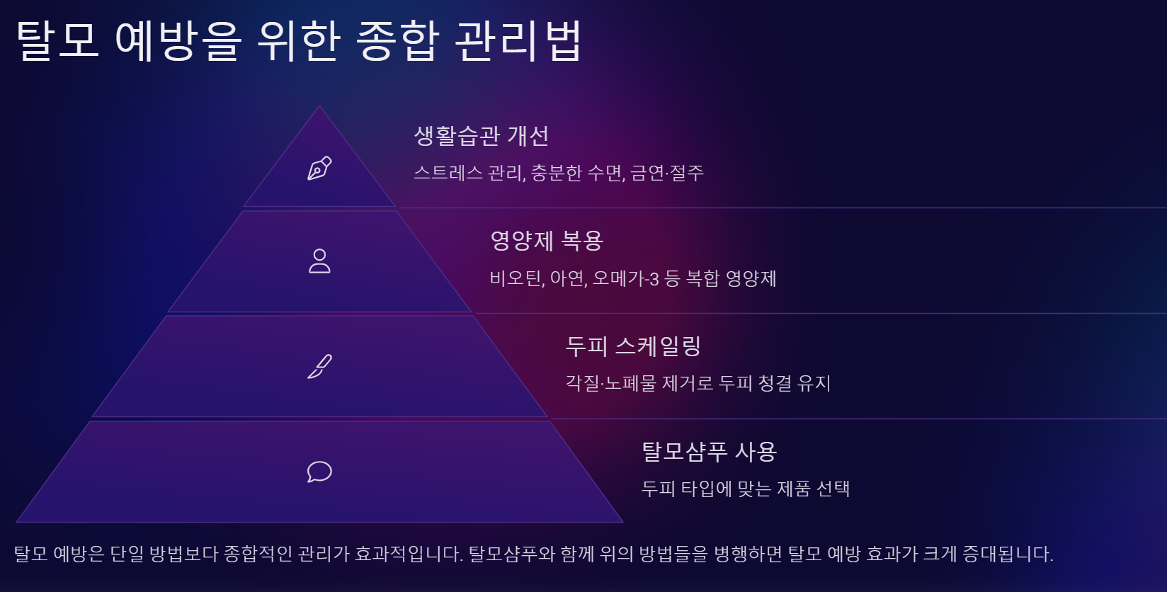 👉 두피 스케일링 + 영양제 복용을 병행하면 탈모 예방 효과가 커집니다.