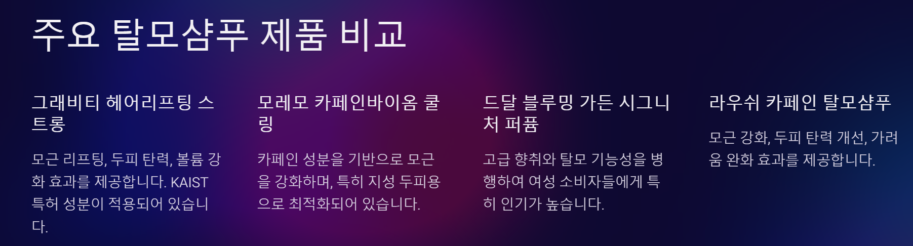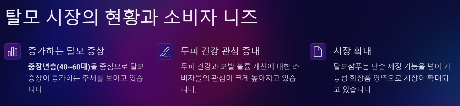 탈모샴푸는 단순히 샴푸 이상의 효과를 기대할 수 있는 두피 건강의 시작점입니다.